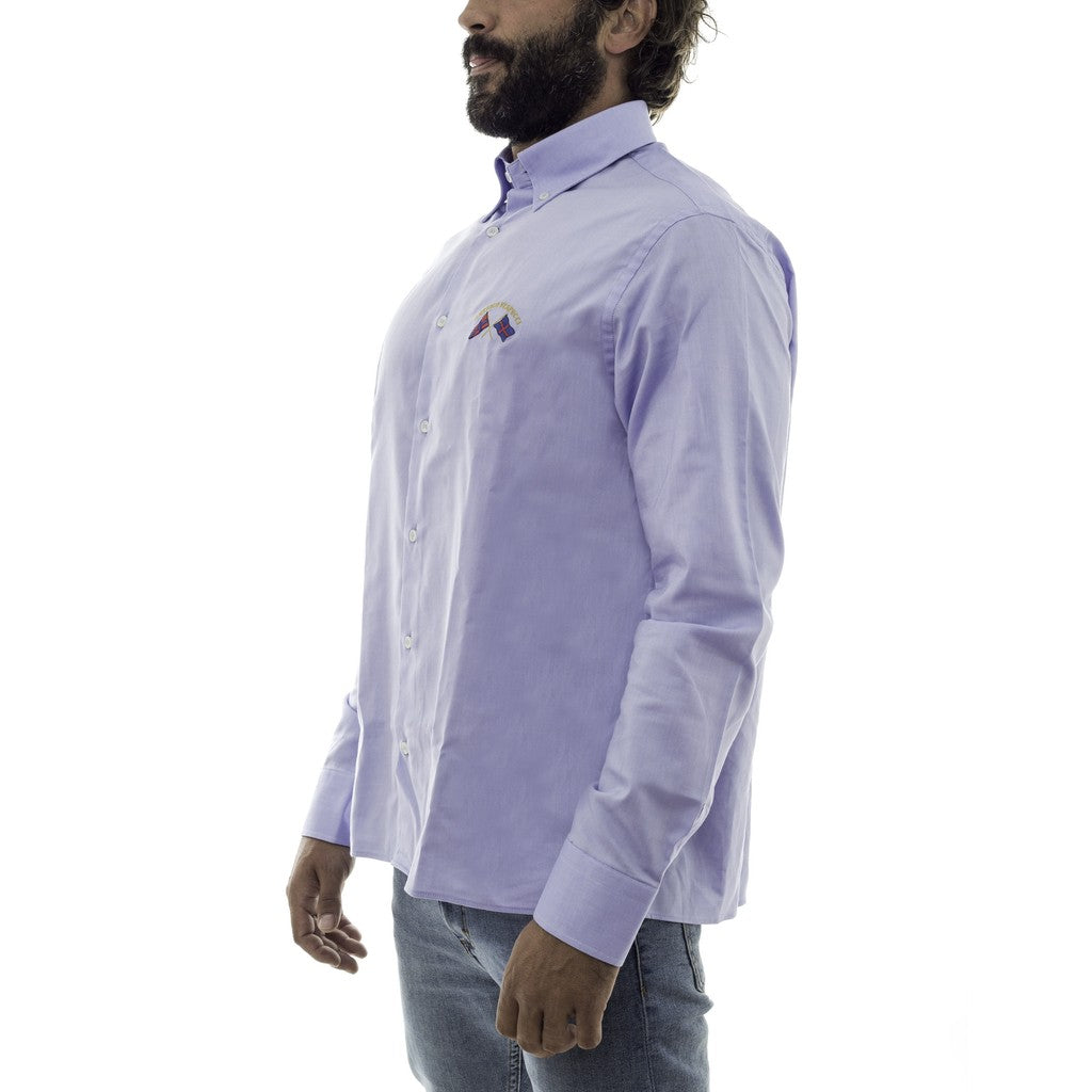 SHIRT, FOR MEN, BASIC COLLAR, REGULAR FIT, LONG SLEEVES, SOLID COLOUR, WITH LOGO