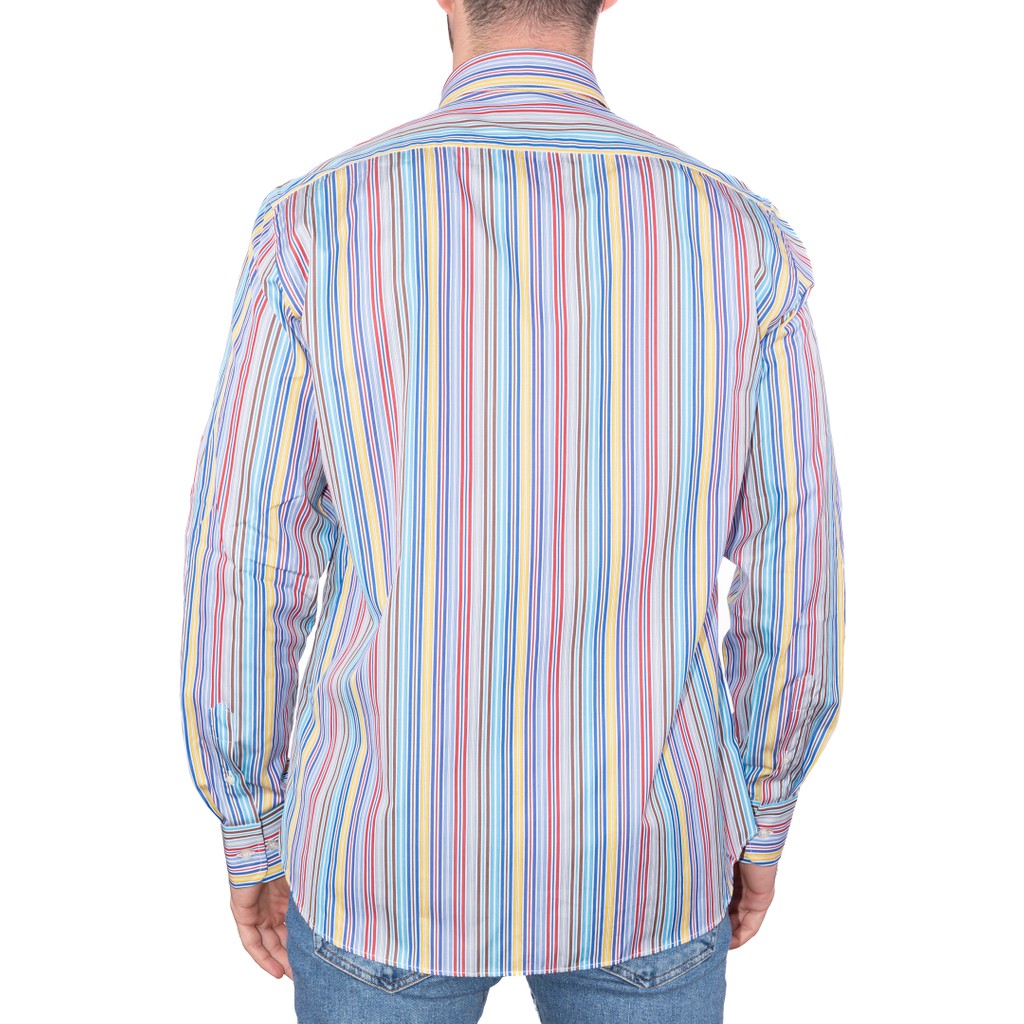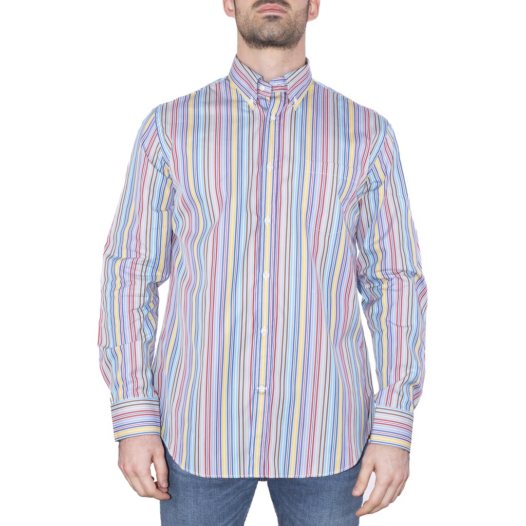 STRIPED SHIRT, FOR MEN, WITH POCKET, BUTTON DOWN, LONG SLEEVES, MULTICOLOR, WITH LOGO, BUTTONS CLOSURE