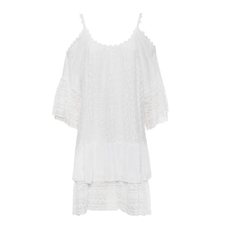 SHORT DRESS, FOR WOMEN, BOAT NECK, SHORT SLEEVES, SOLID COLOUR, WITH SUSPENDERS