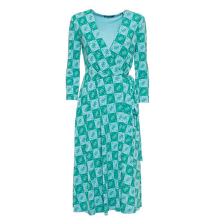 LONG DRESS, FOR WOMEN, V-NECK, LONG SLEEVES, BI-COLOR